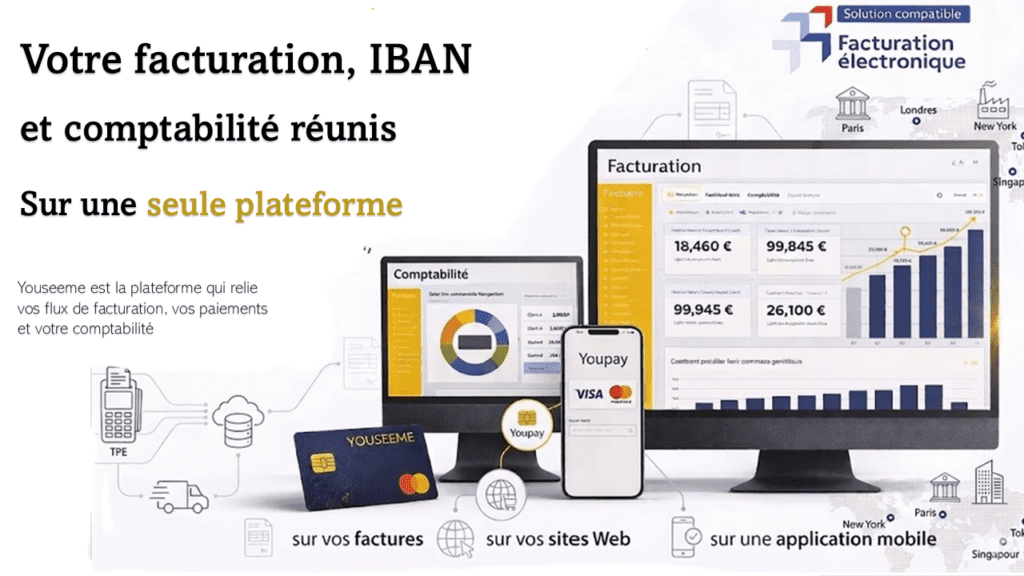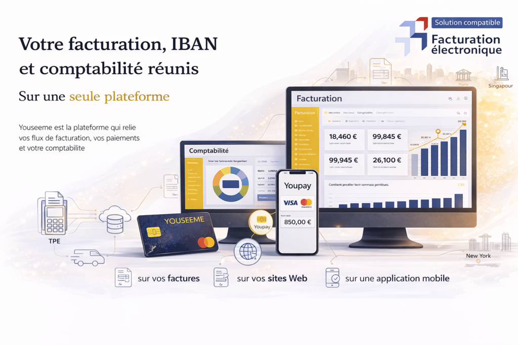 La solution de facturation s’appuie sur Dolibarr, un logiciel qui est utilisé par plus de 150 000 sociétés en France, le compte IBAN Pro Youseeme et le module de paiement sont intégrés dans la configuration, les données sont sauvegardées, le module facture X est en option, ainsi que plus de 300 modules selon les métiers.